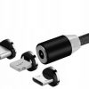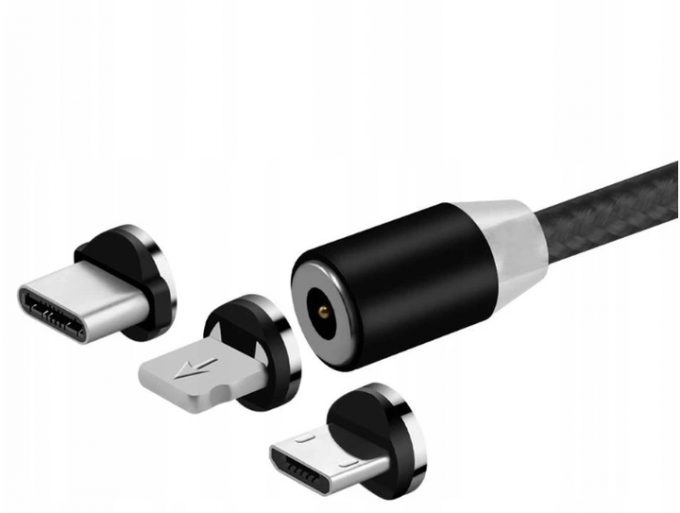 Tento nabíjací magnetický kábel má vymeniteľné hlavice pre nabíjanie akéhokoľvek mobilného zariadenia s týmito koncovkami: mikro-USB, Lightning (iPhone) a USB-C. Dĺžku má 1m a podporuje rýchlosť nabíjania Quick charge 2.0 so silou nabíjacieho napätia 2,4A.