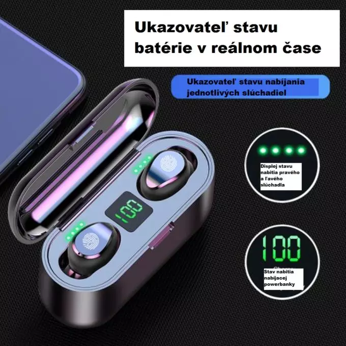 Bezdrôtové bluetooth slúchadlá TWS F9 s powerbankou